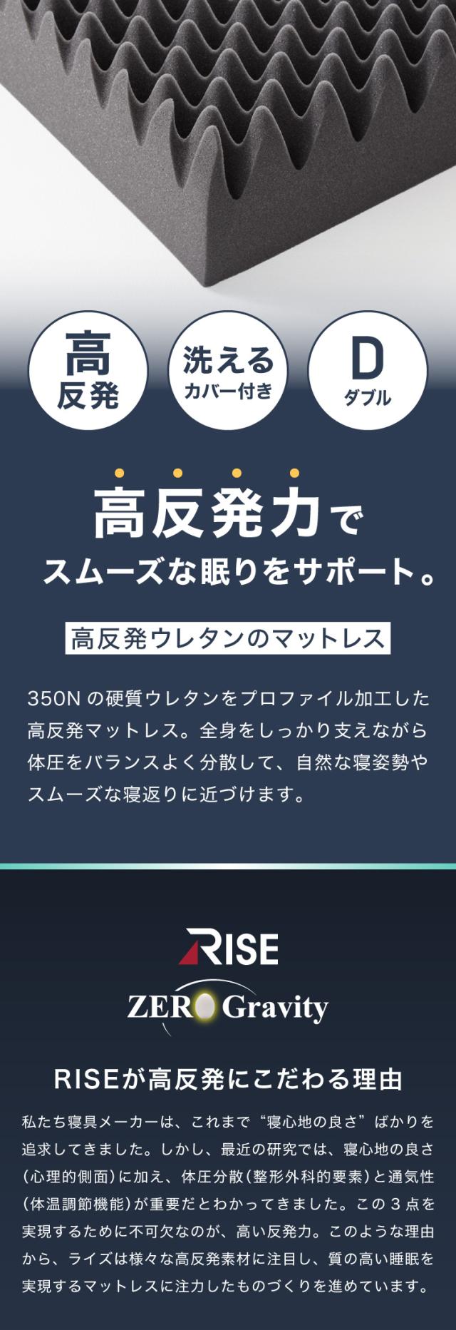 RISE 極厚高反発マットレス 350N 厚さ12.5cm ダブル ライズ東京 ゼログラビティ 硬質ウレタン 3つ折り ベッドマットレス トッパー 体圧分散 寝返り ヘたりにくい 高反発【送料無料】