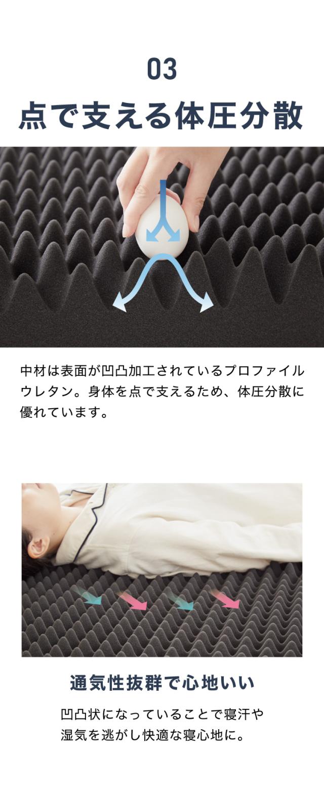350ニュートンの硬質ウレタンを、たまご型にカットした高反発マットレスです。
