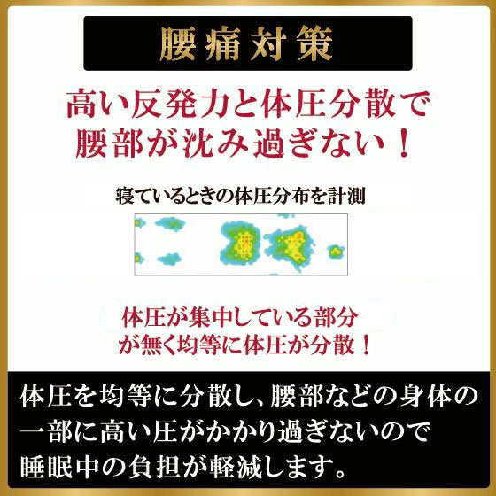 硬さを強化したたまご型の山はつぶれにくいため、腰部をしっかりサポートしながら、適度な通気性で快適な睡眠へと導きます。
