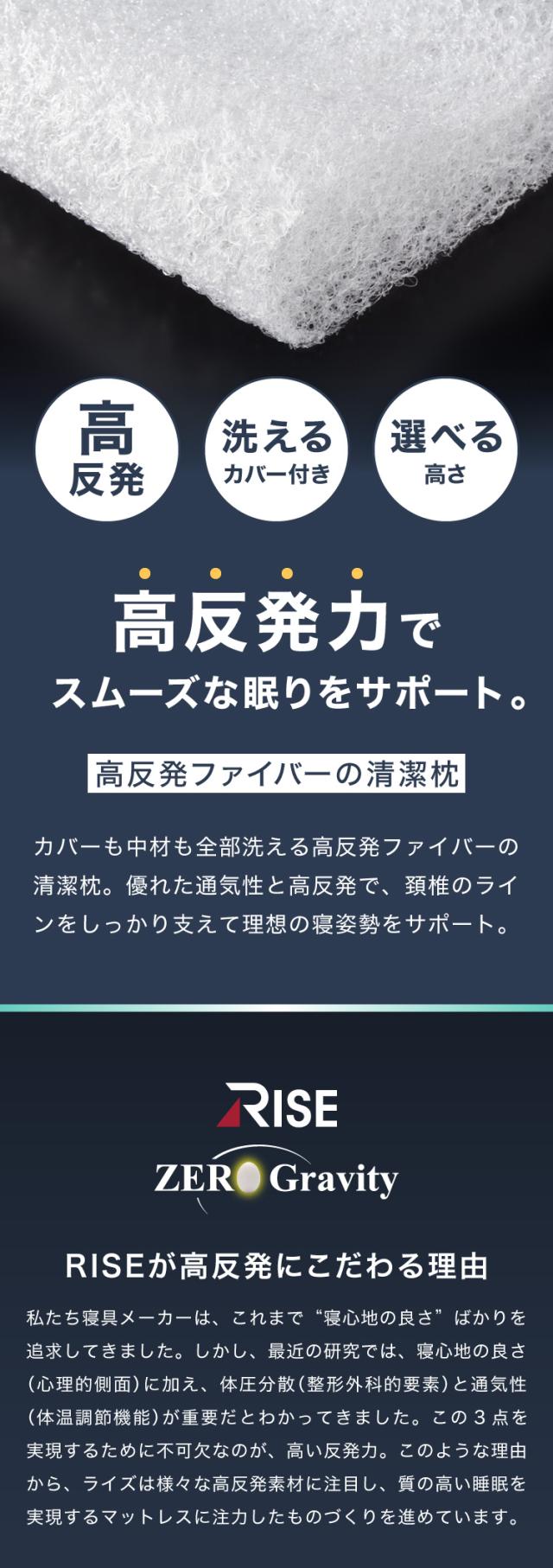 RISE 枕 ファイバーリラックスピロー ライズ東京 ゼログラビティ 頸椎安定 高さ調整シート 高め 低め 洗える ムレにくい 清潔快適 通気性 反発力 弾力性 高さ調節 マクラ まくら 硬め【送料無料】