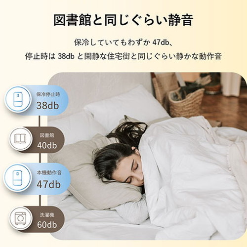 保冷していてもわずか47db。停止時は38dbと、静かな動作音です。