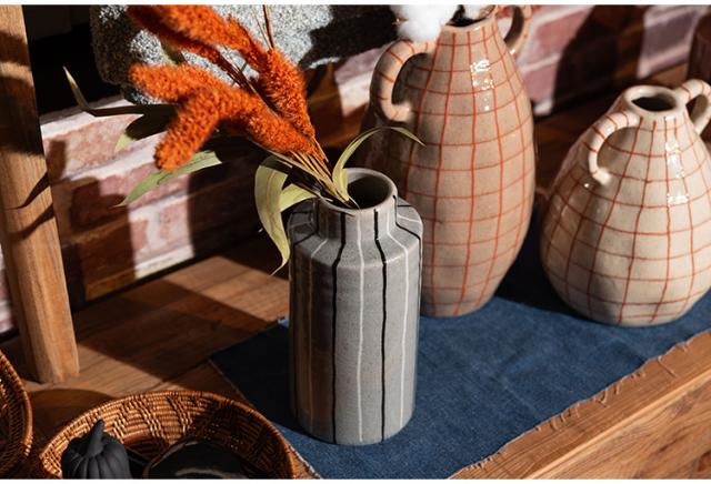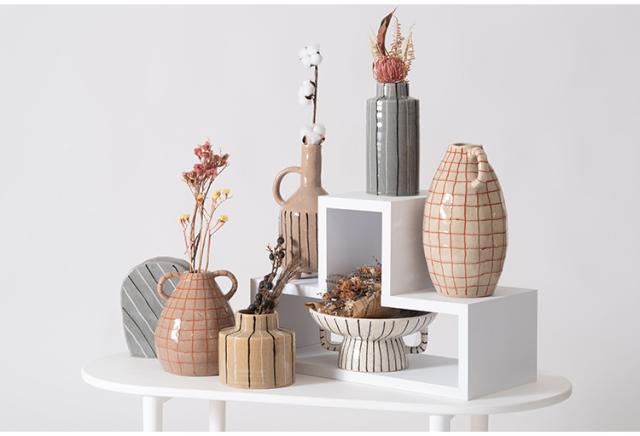 CLY-75 チェック柄フラワーベース | CLY-76 チェック柄フラワーベース | CLY-73 ストライプ柄フラワーベース |