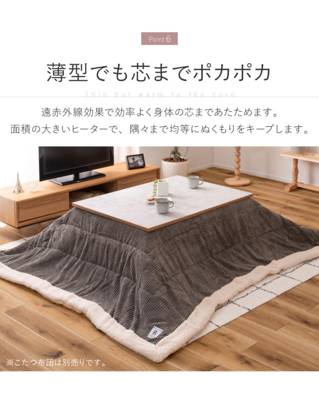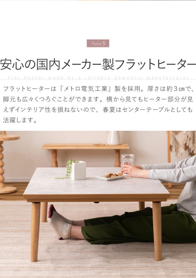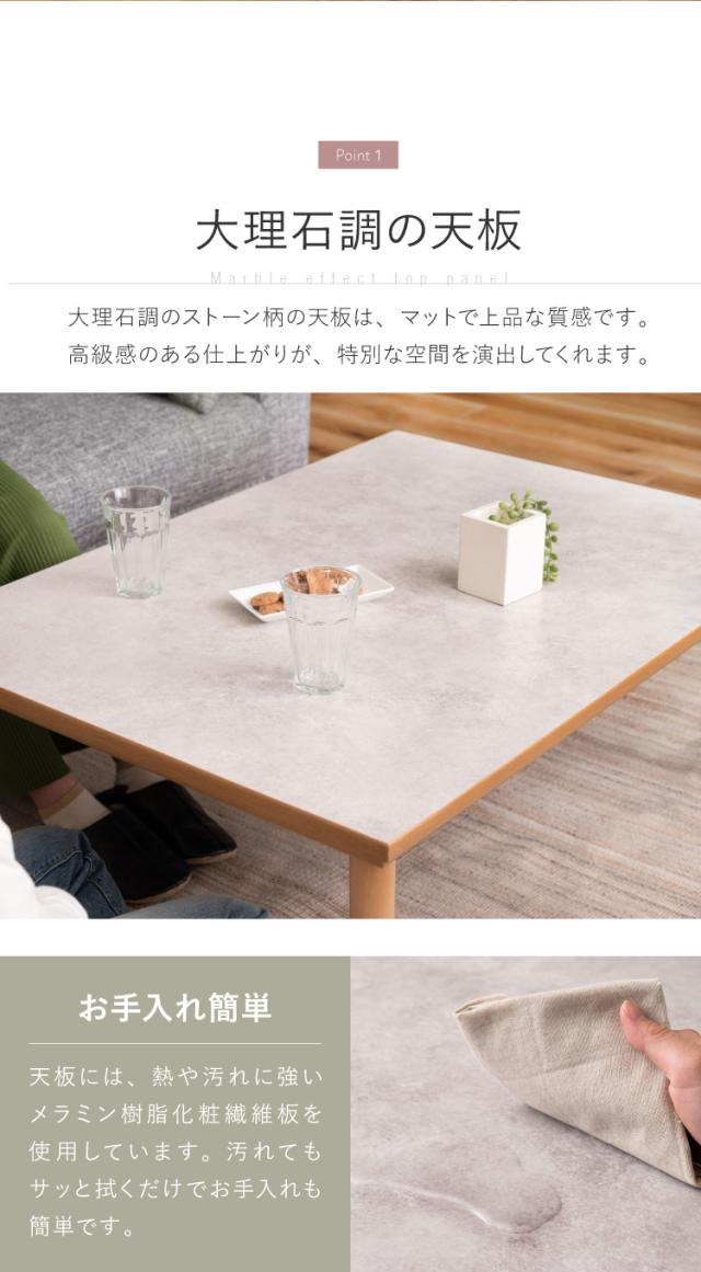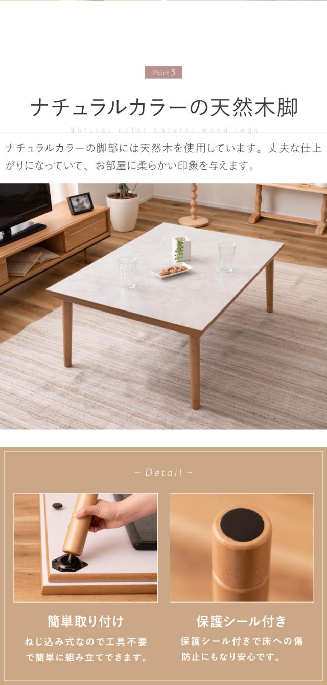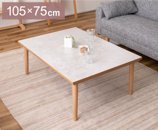 こたつ フラットヒーター 幅105cm 継ぎ脚式 継脚 大理石調 木目調 節電 天然木 木製 おしゃれ 北欧 韓国インテリア オールシーズン 高さ調節 手元コントローラー センターテーブル リビングテーブル(代引不可)【送料無料】