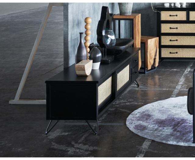 ●天然ラタンを使用したブラックカラーのTVボード&チェスト