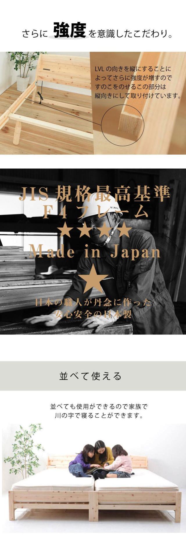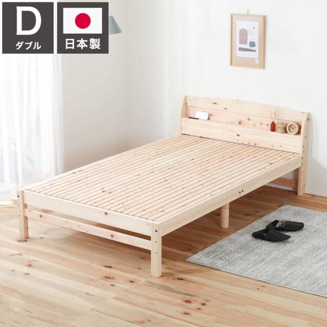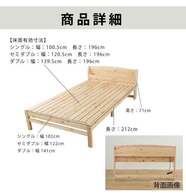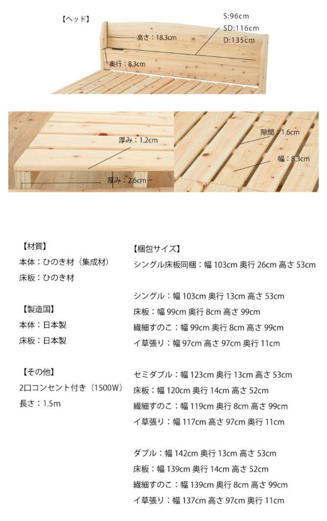 便利な棚コンセント付きのヒノキベッド。佐川急便で配送可能。2口コンセント付き。1500W