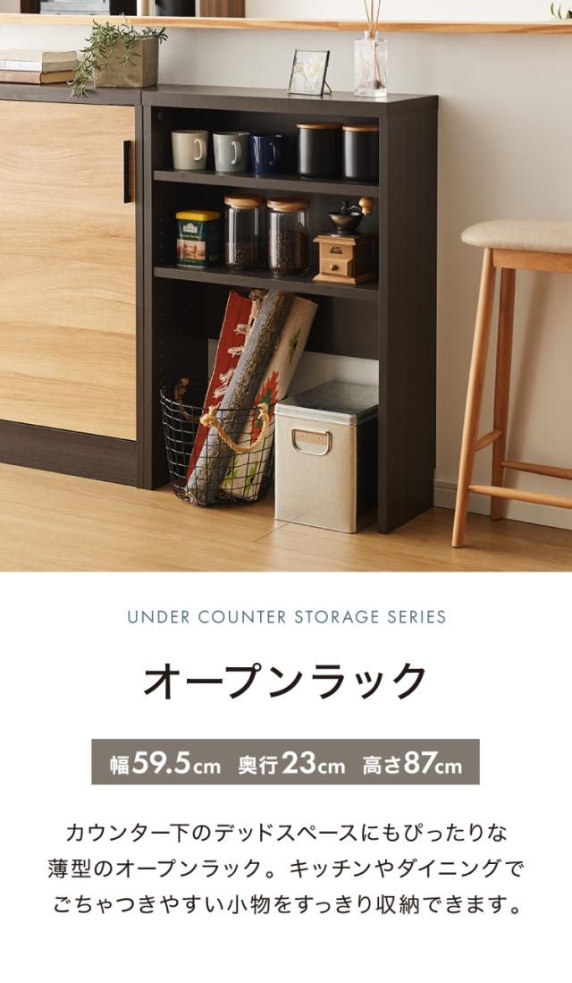 カウンター下収納 幅59.5cm 和モダン オープンタイプ ロータイプ おしゃれ キッチン収納 リビング収納 食器棚 コンパクト 省スペース キッチンカウンター 北欧 スリム 木製 木目調【送料無料