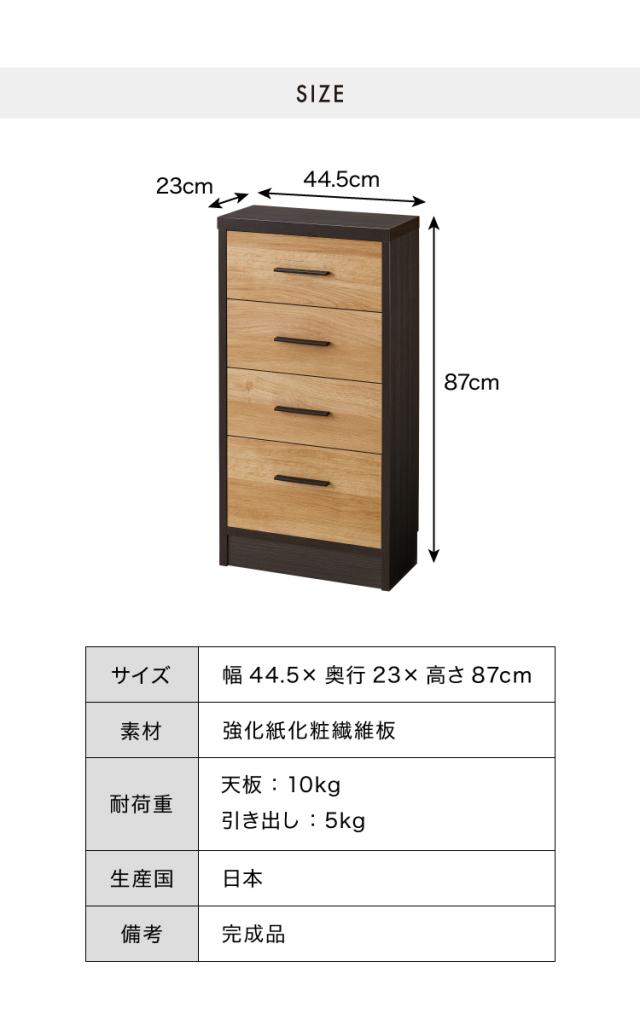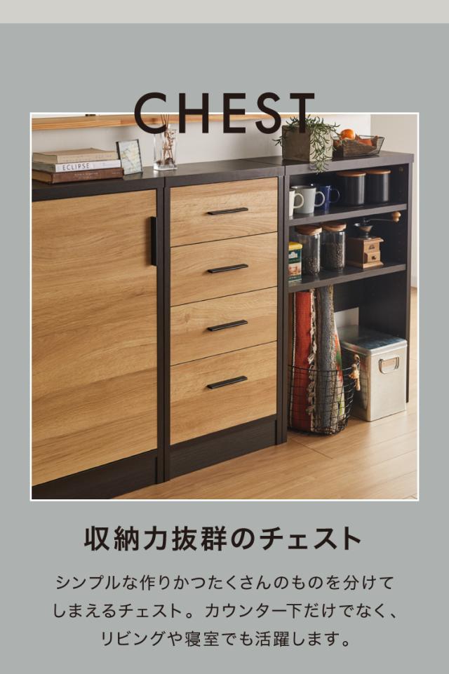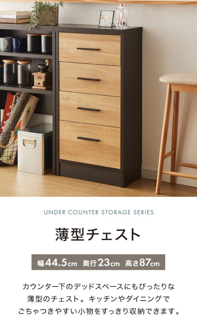 カウンター下収納 幅44cm 和モダン 完成品 引出し 4段 ロータイプ おしゃれ キッチン収納 リビング収納 食器棚 コンパクト 省スペース キッチンカウンター 北欧 スリム 木製 木目調【送料無料