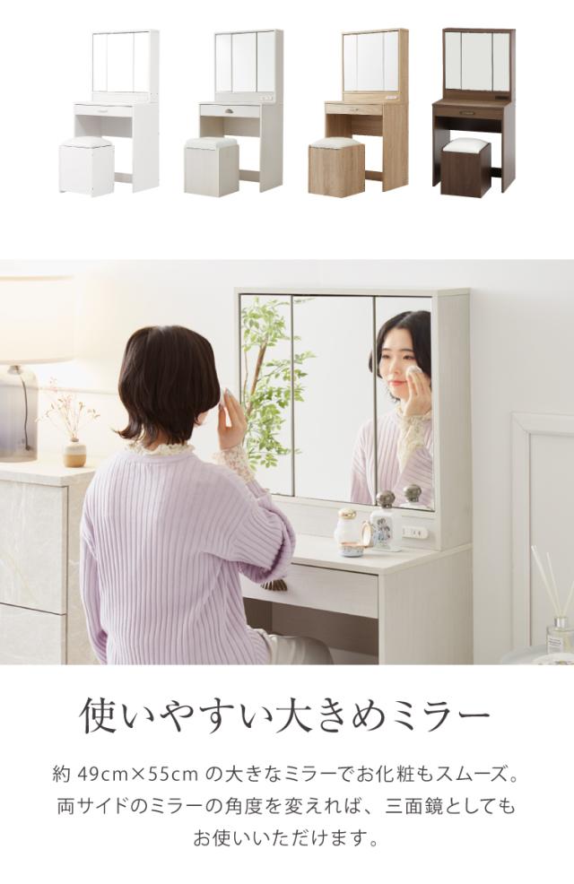 ドレッサー 三面鏡 椅子付 セット 三面鏡タイプ 白 コンセント付き スツール付き おしゃれ 可愛い かわいい ホワイト フレンチ 北欧 3面 化粧台 鏡 ミラー 花台 収納コスメワゴン 机 インテリア コスメワゴン 収納 メイク台【送料無料】 代引不可