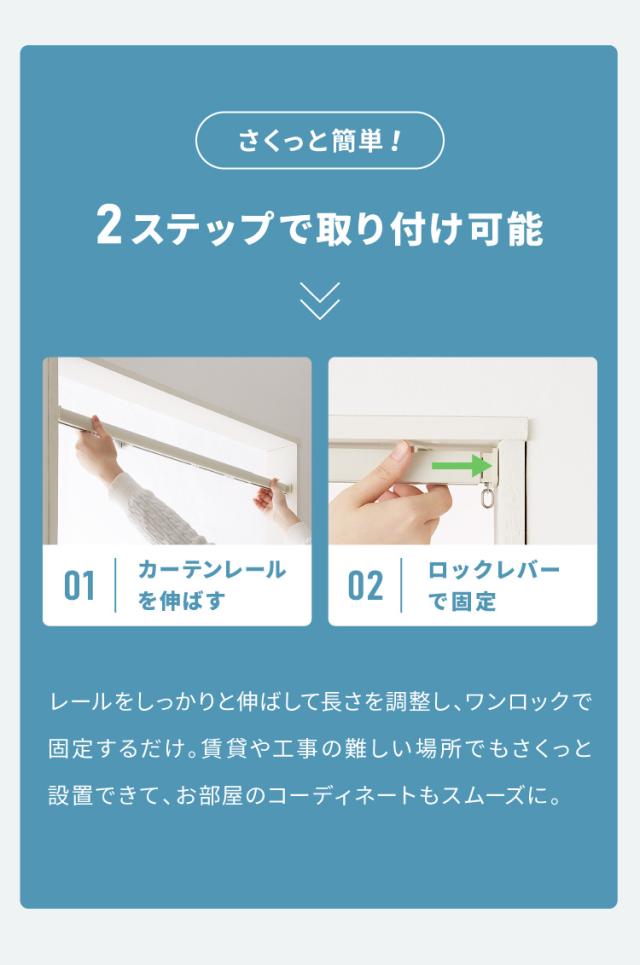 カーテンレール、テンションレール、伸縮、つっぱり、賃貸、レール、窓、間仕切り、保温、断熱、冷暖房、省エネ、カーテン、シンプル、マンション、一軒家、新築、法人、ホテル、新生活、一人暮らし、スマート、モノトーン、おしゃれ、かわいい、社員寮、コワーキング