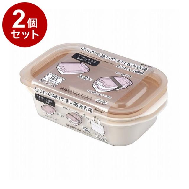 【単品2個セット】 とにかく洗いやすいお弁当箱 270mL 2個組 ピンクベージュ イノマタ化学