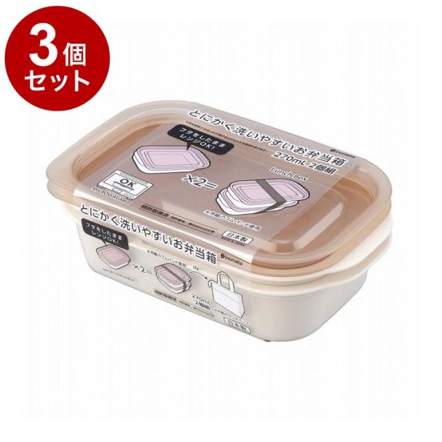 【単品3個セット】 とにかく洗いやすいお弁当箱 270mL 2個組 ピンクベージュ イノマタ化学