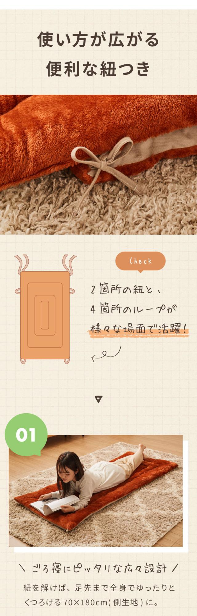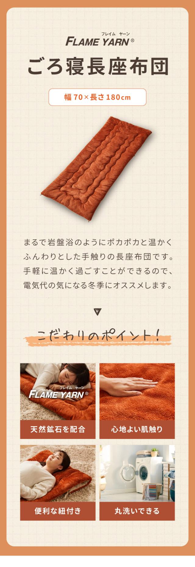 岩盤浴のようなごろ寝長座布団 ごろ寝マット 70×170cm 岩盤浴 FLAME YARN ごろ寝 座布団 長座布団 マットレス クッション 寝具 インテリア 北欧 かわいい シンプル あったか コンパクト 収納 冬【送料無料】
