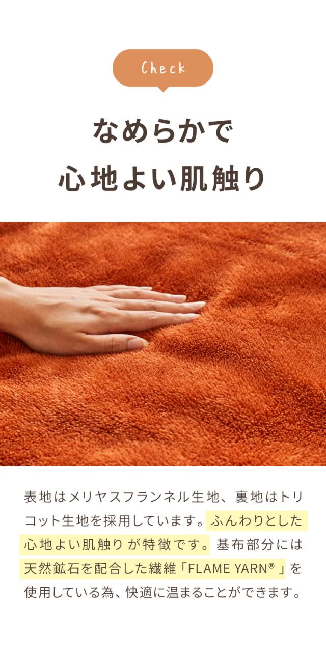 肌に触れる表地には、岩盤浴にも使われている天然鉱石を配合した繊維「FLAME YARN(R) 」を使用(生地の基布部分に使用)。