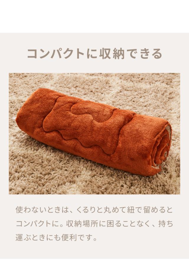 - 軽いし丸めて収納や持ち運び出来るのでとても便利です!!とても暖かい大満足です!!
