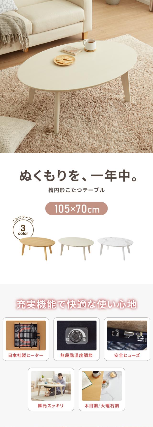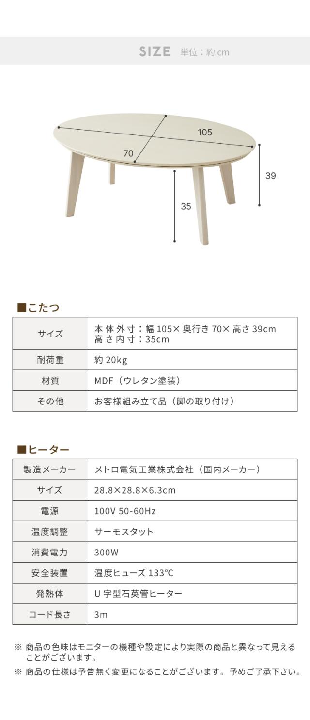 楕円形こたつ 105×70cm テーブル単品 直径90cm 天然木脚 オーバルテーブル こたつテーブル 炬燵 家具調こたつ 年中使える 丸型 こたつ テーブル こたつ ローテーブル センターテーブル(代引不可)【送料無料】