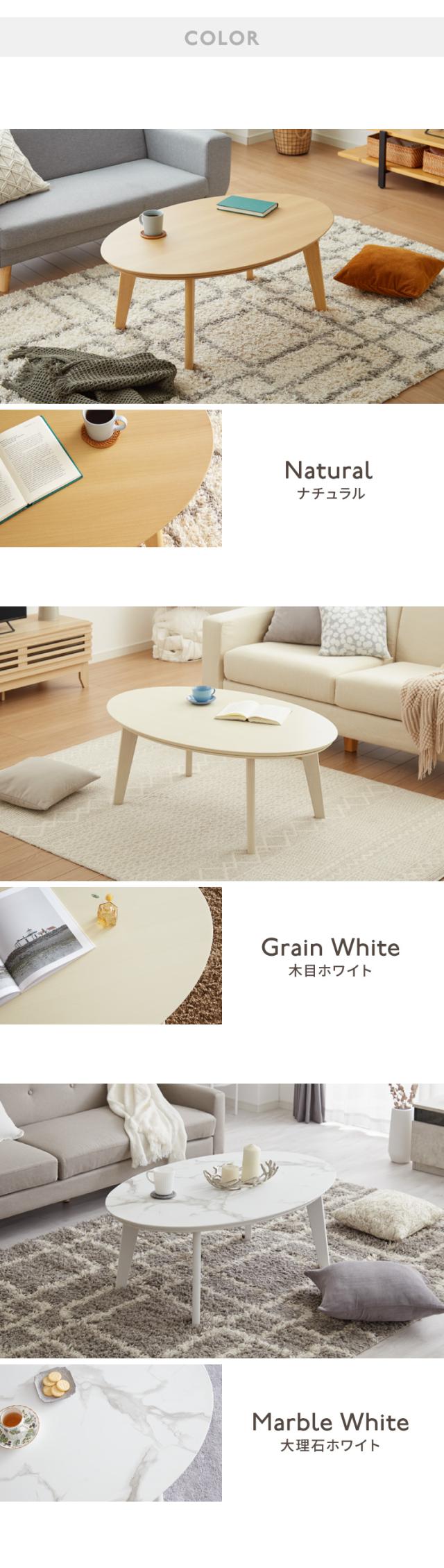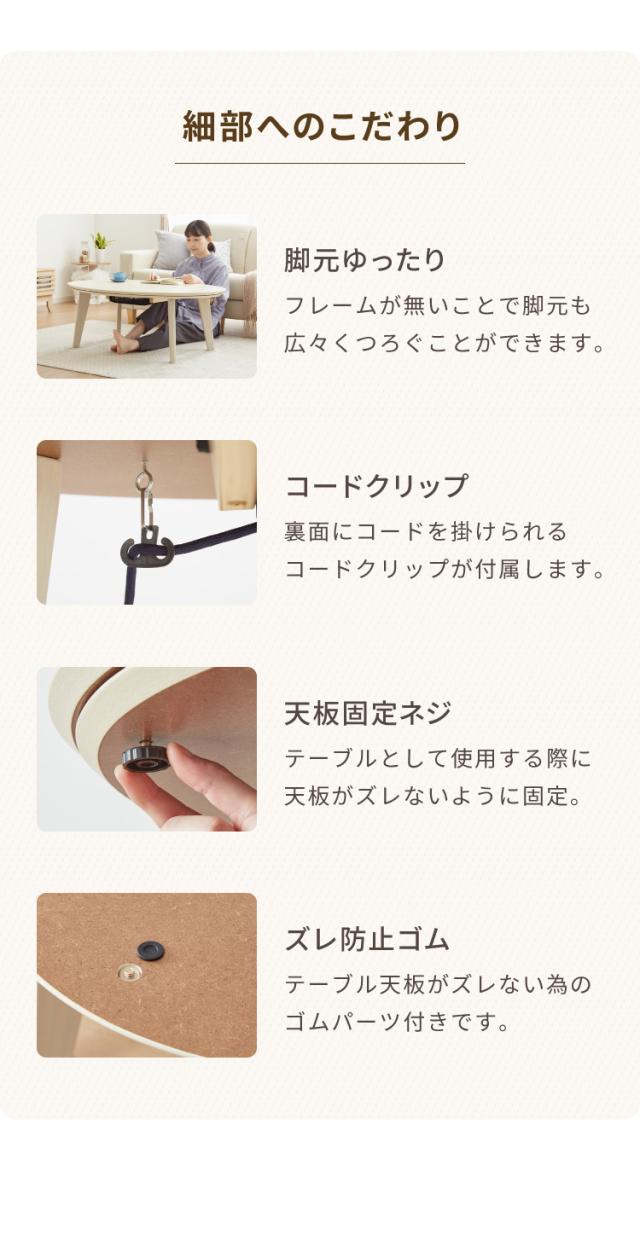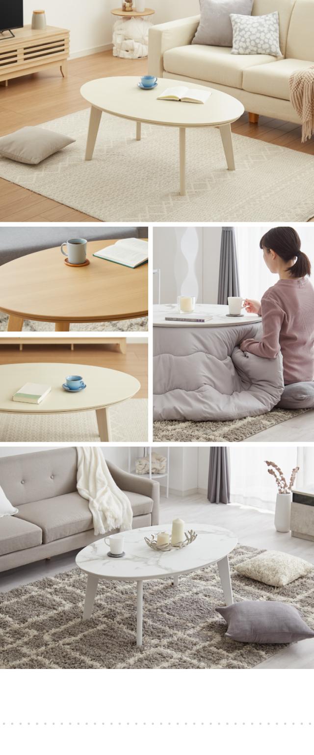 ・楕円形が温かみを感じられるこたつテーブルです。