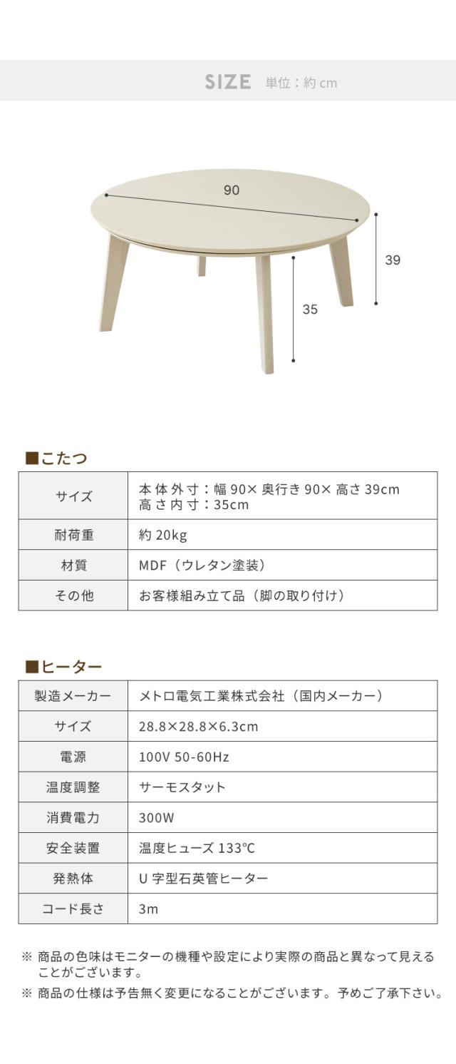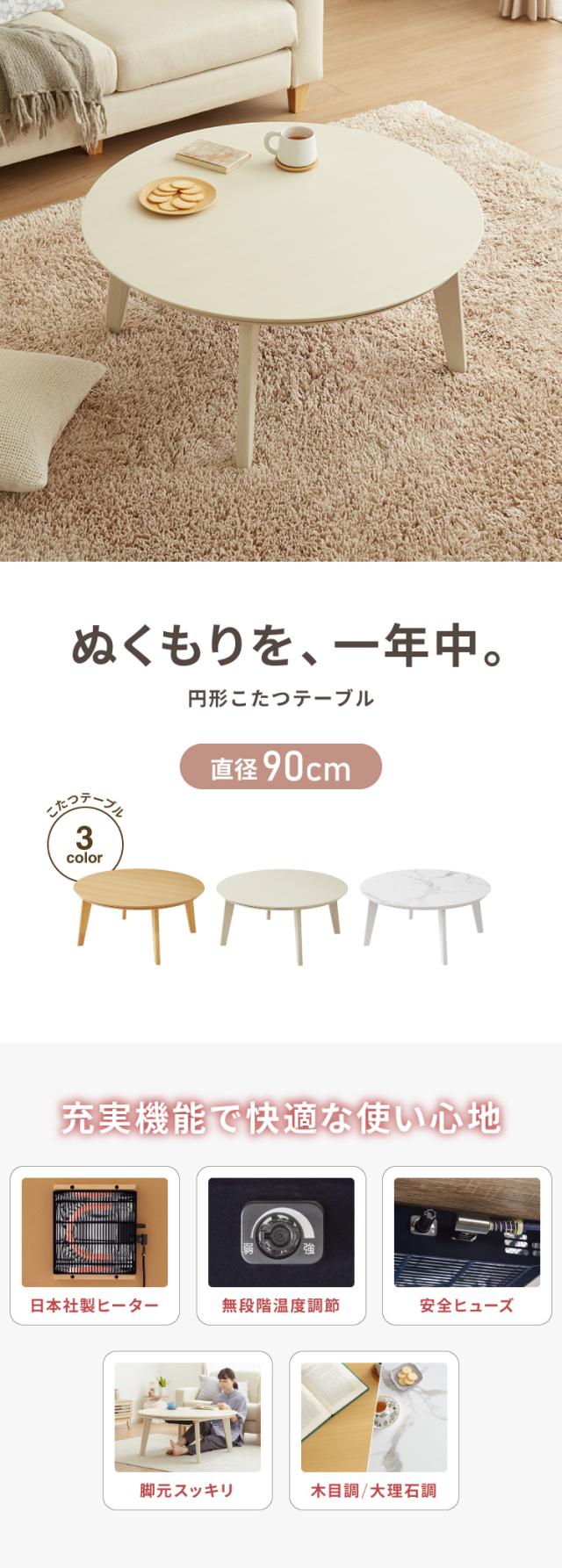 円形こたつ 90×90cm テーブル単品 直径90cm 天然木脚 こたつテーブル 炬燵 家具調こたつ 年中使える 丸型 こたつ テーブル こたつ ローテーブル センターテーブル(代引不可)【送料無料】