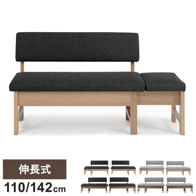 ダイニングチェア 伸長式 幅110(142)cm 2~3人掛け 伸縮 背もたれ付き ファブリック 北欧 おしゃれ ウォールナット オーク 伸長チェア リビング ダイニング 食卓椅子(代引不可)【送料無料】