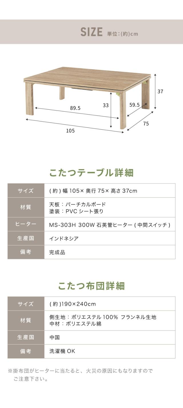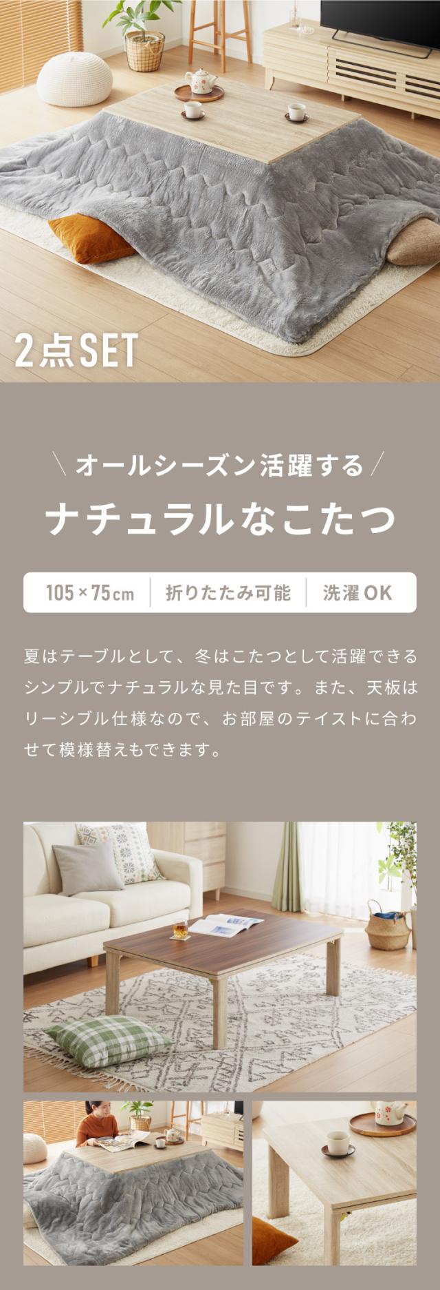 折りたたみ式 こたつ 布団付き 2点セット テーブル+掛け布団 105×75 長方形 折れ脚 こたつテーブル 炬燵 コタツ 北欧 メレンゲタッチ ふわとろ センターテーブル ローテーブル おしゃれ(代引不可)【送料無料】