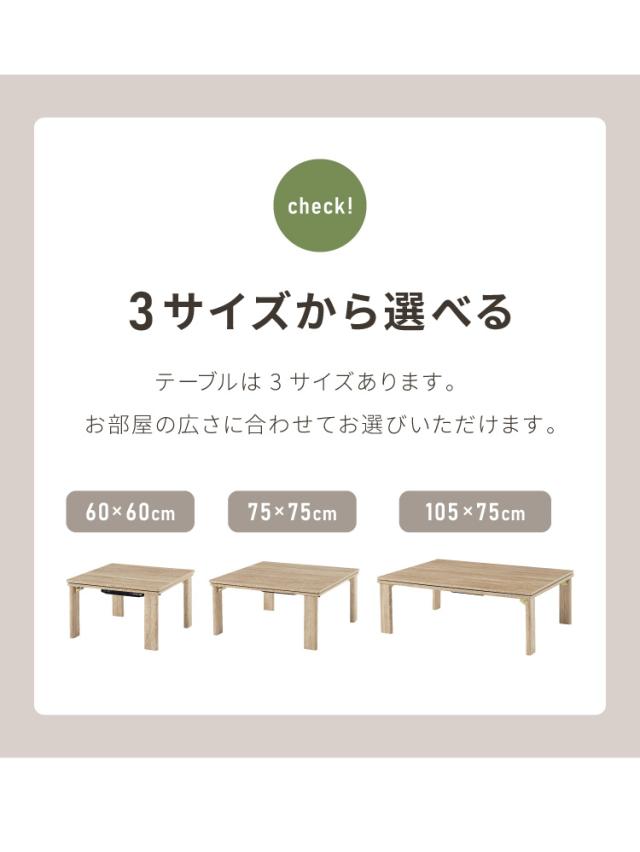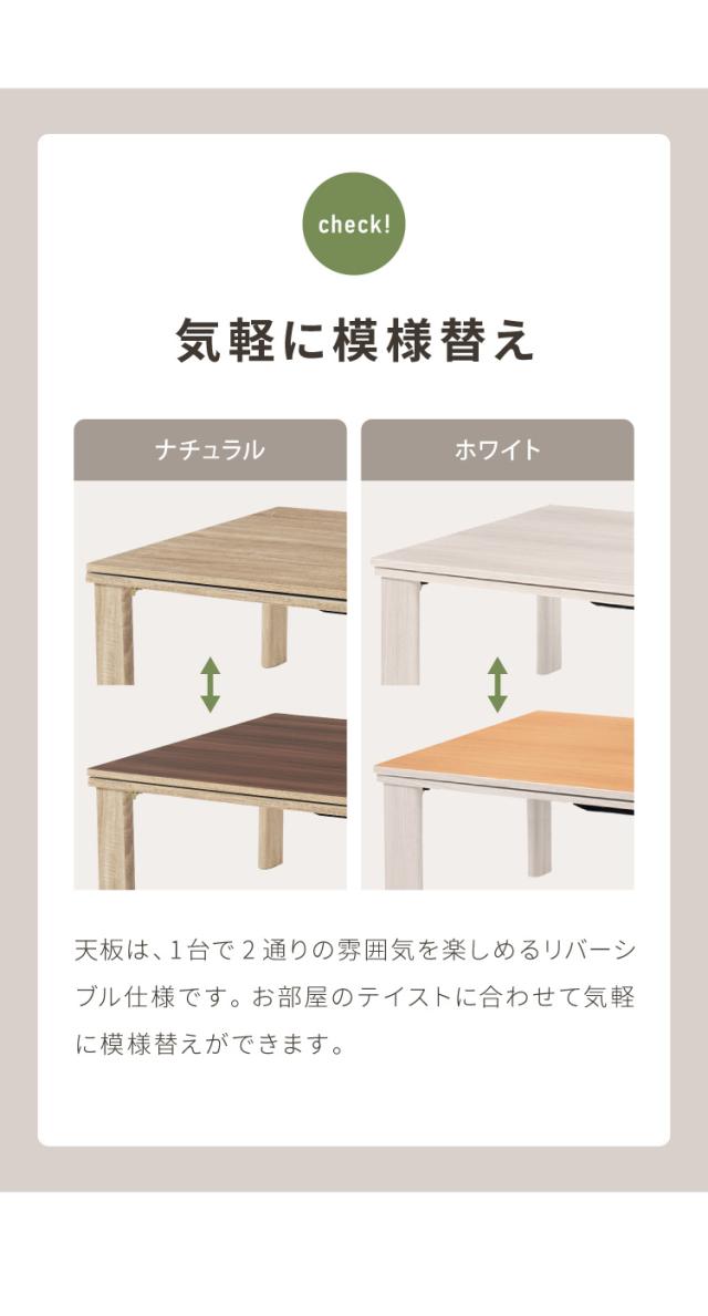 夏はテーブル・冬はこたつとしてオールシーズン使用できるカジュアルこたつ。