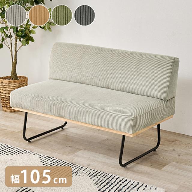 ソファ 2人掛け 幅105cm コーデュロイ 肘無し ゆったりソファ アームレスソファ スチール脚 おしゃれ ダイニングソファ インダストリアル(代引不可)【送料無料】