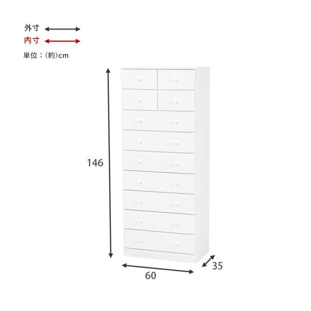 チェスト 白 幅60 引き出し 11杯 完成品 スーパーハイタイプ 奥行35 高さ146 天然木 ホワイト モノトーン 箪笥 タンス 衣類収納 韓国インテリア おしゃれ(代引不可)【送料無料】