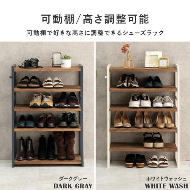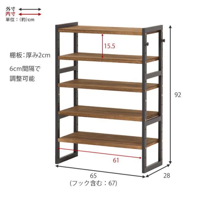 天然木 シューズラック 5段 幅65cm サンダルからブーツまで 可動棚 オープンラック 棚 収納 靴箱 シューズボックス 玄関収納 おしゃれ(代引不可)【送料無料】