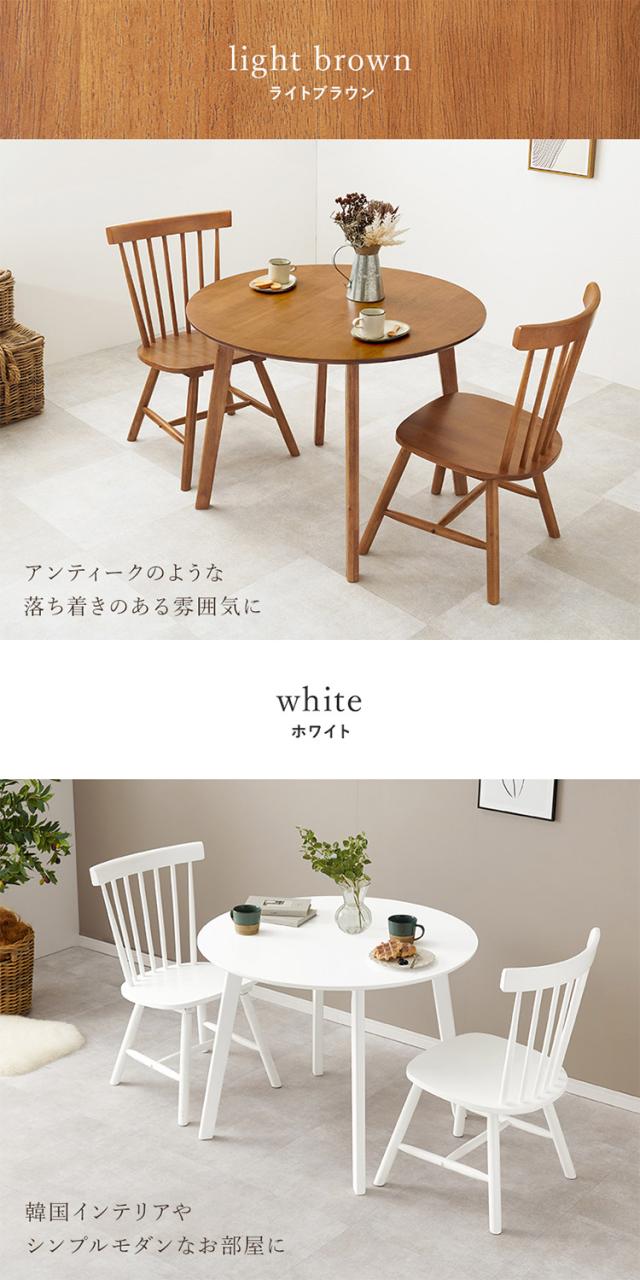 人気のウィンザーチェアと円形テーブルでカフェのような雰囲気になるダイニング3点セット