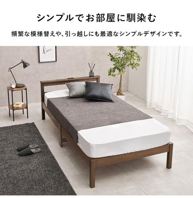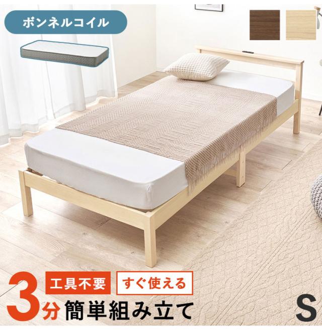 ネジなし、工具不要で簡単組立。お部屋に馴染むシンプルなデザインの宮棚とコンセント付きベッド。安定感のある寝心地のボンネルコイルマットレスセット