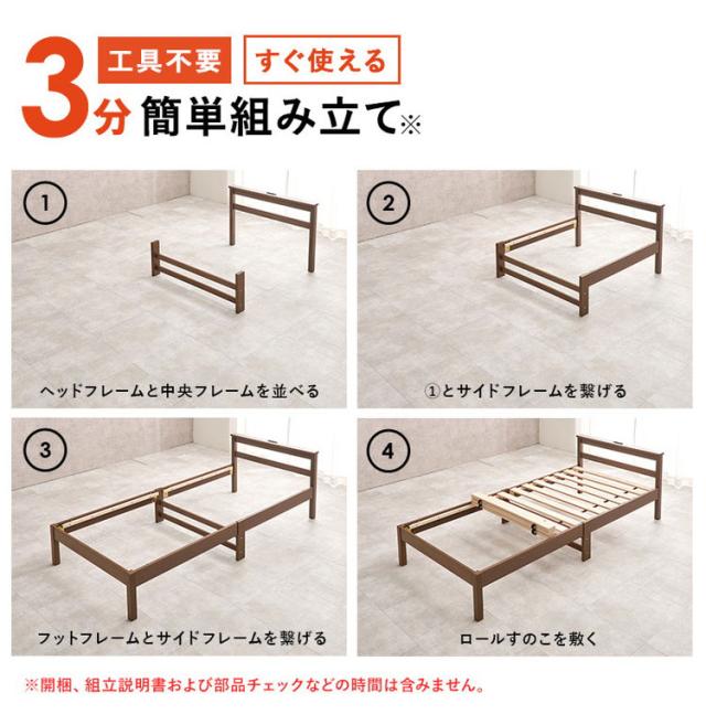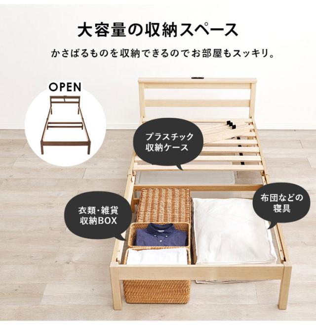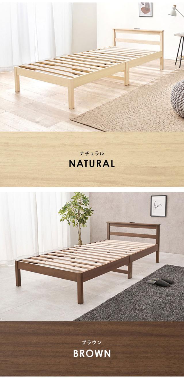 工具不要・簡単組立 すのこベッド シングル ボンネルコイルマットレス付き 耐荷重150kg 2口コンセント付き ベッドフレーム 木製 スノコ ベッド 寝具 寝具インテリア おしゃれ 北欧(代引不可)【送料無料】