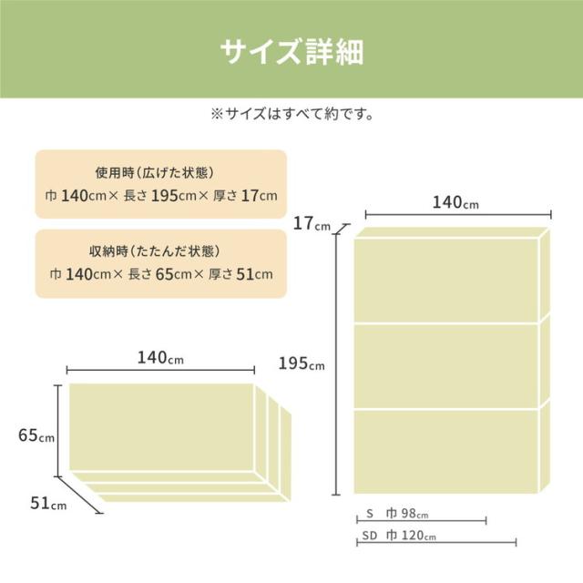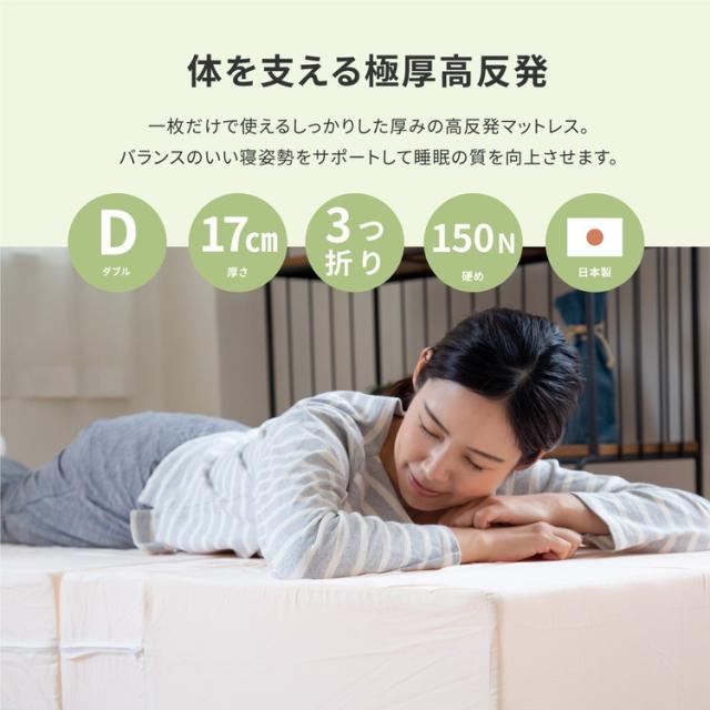 日本製 折りたたみ 高反発マットレス ダブル 3つ折り 極厚17cm 高反発ウレタン ウレタンマットレス コンパクト マット 敷布団 敷き布団(代引不可)【送料無料】