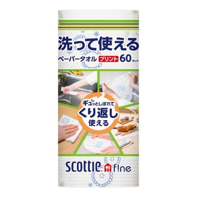 【単品12個セット】 日本製紙クレシア スコッティ ファイン 洗って使えるペーパータオル プリント 60カット 1ロール×12個(代引不可)【送料無料】