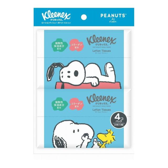 【単品12個セット】 日本製紙クレシア クリネックス ローションティシュー ポケット スヌーピー 4コパック×12個(代引不可)【送料無料】