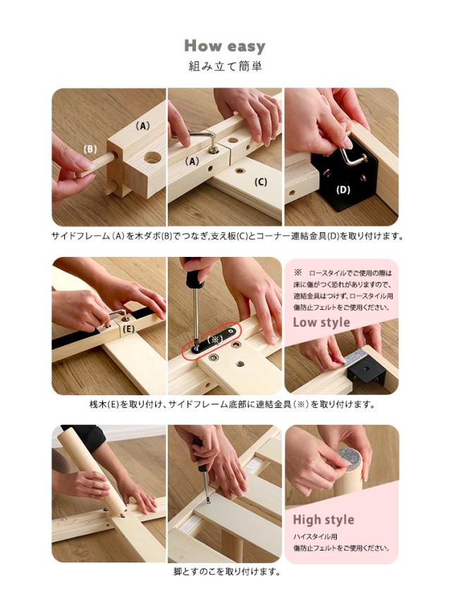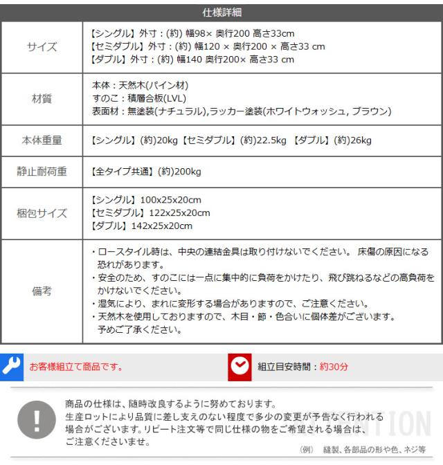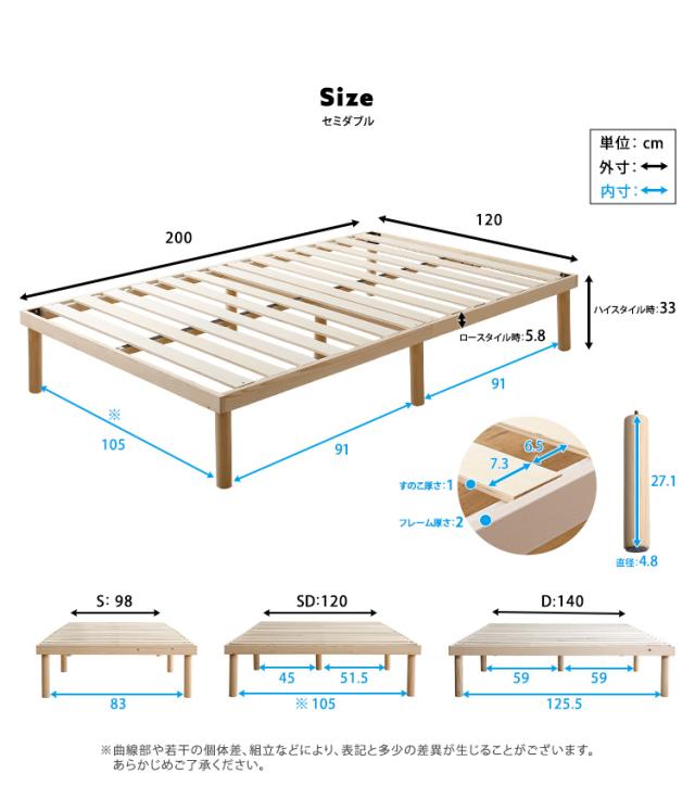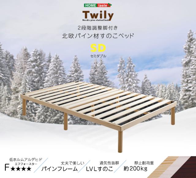 パイン材高さ2段階調整脚付きすのこベッド(セミダブル) 北欧パイン すのこベッド ベッド 2段階高さ調節 天然木パイン ベッドフレーム フレームのみ フレーム すのこ セミダブルベッド セミダブル(代引不可)【送料無料】