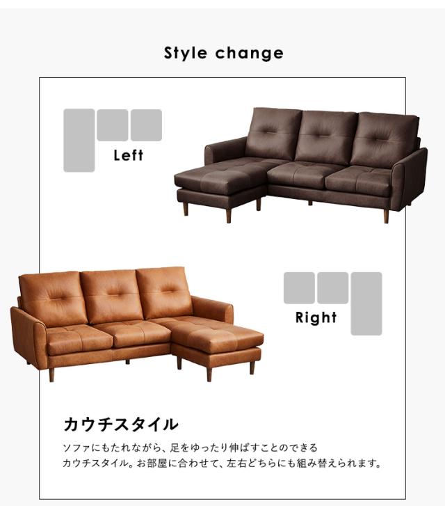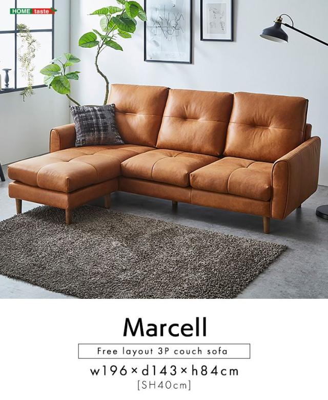 レイアウト自由 3人掛け カウチソファ【Marcell-マーセル-】