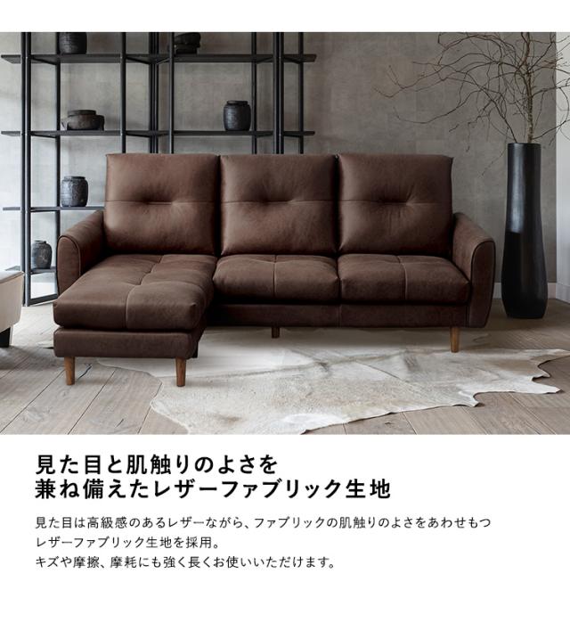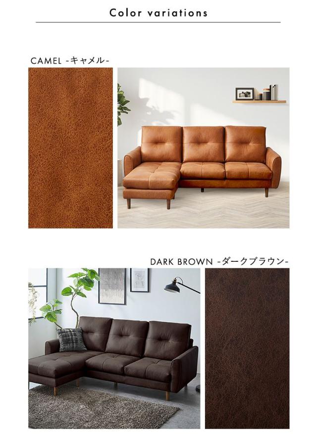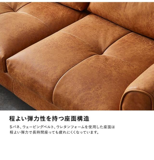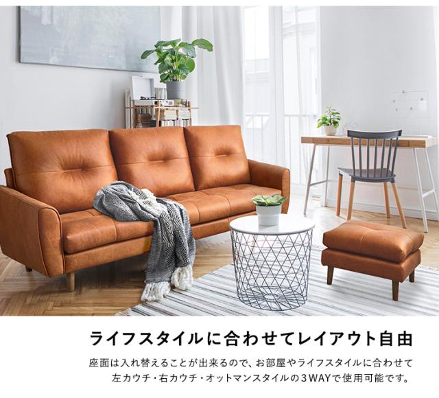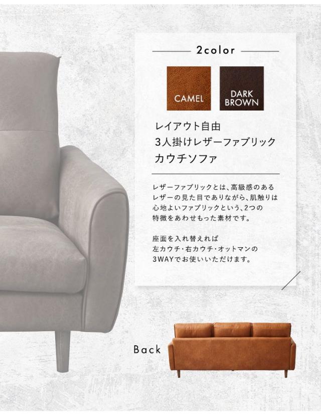 レイアウト自由 3人掛け レザーファブリック カウチソファ【Marcell-マーセル-】 カウチソファ 3人掛け レザー ファブリック ヴィンテージ オットマン 高級感 ブラウン キャメル 高さ13cm(代引不可)【送料無料】