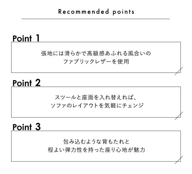 ヘッドレスト可動 3人掛け カウチソファ【Emmet-エメット-】
