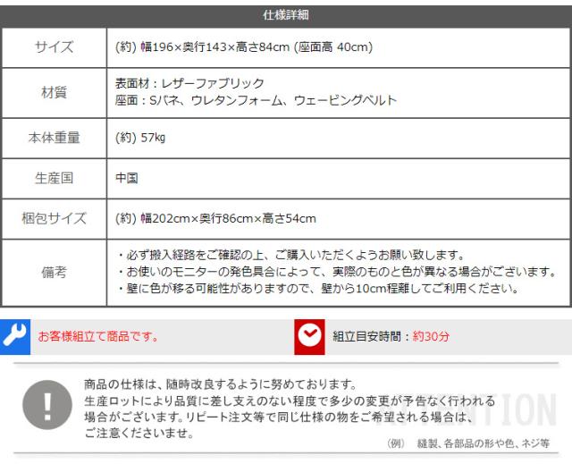約 幅196×奥行143×高さ84(座面高40)cm