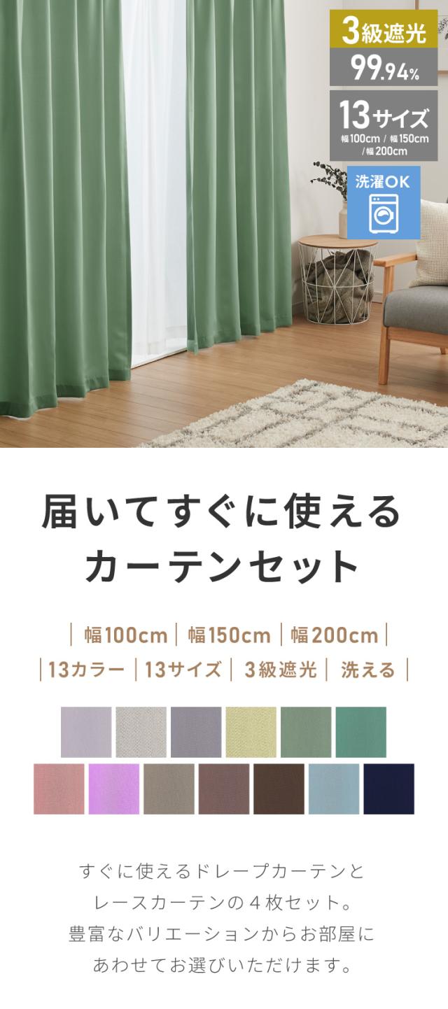 カーテン レースセット 4枚組 2枚組 暗すぎない 遮光カーテン 13色 13サイズ 直ぐに使える ドレープカーテン レースカーテン 洗える 新生活 窓 賃貸 おしゃれ(代引不可)【送料無料】