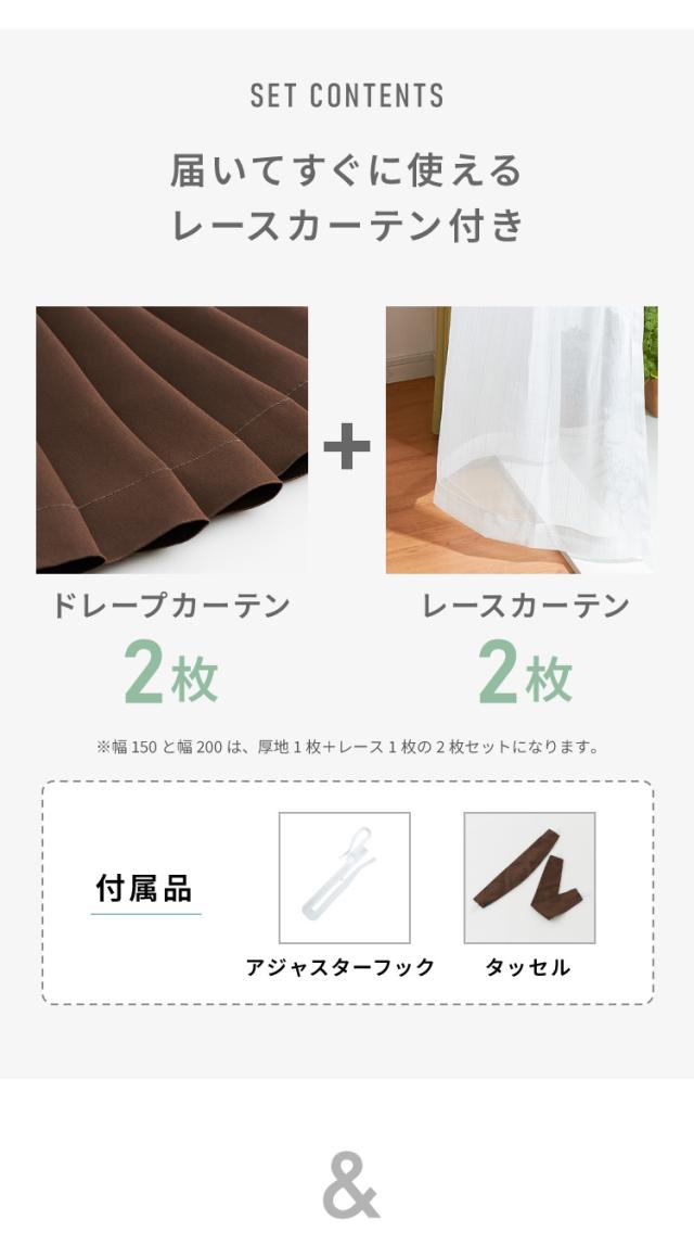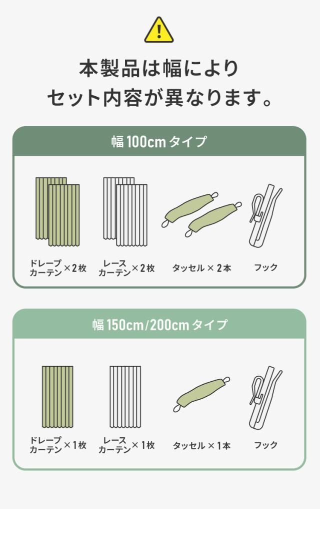 ※幅150と幅200は、厚地1枚+レース1枚の2枚セットになります。