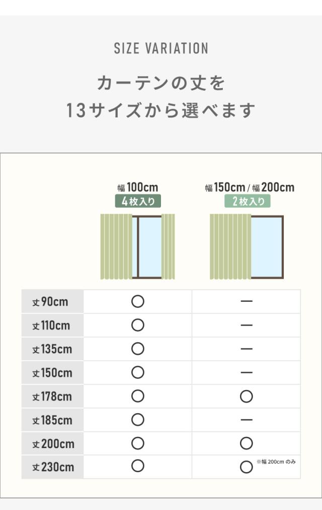 13色×13サイズと豊富なバリエーションで、お部屋にぴったりのカーテンがきっと見つかります!