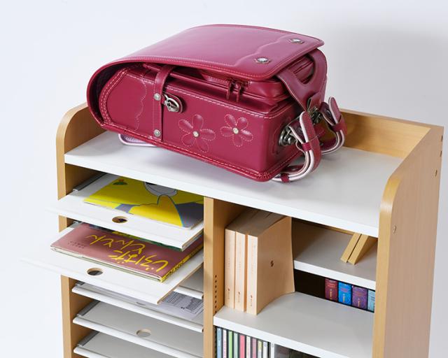 天板にはランドセルを収納して学校教材をひとまとめにできます。奥行きは30cmなので圧迫感なく