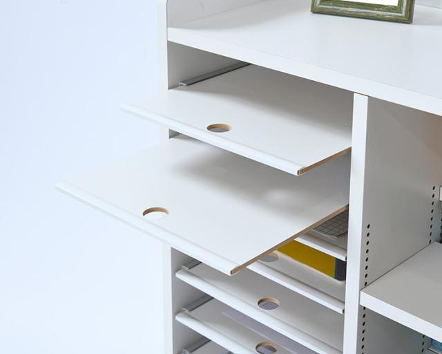 右側はスライド棚で教科書やプリント類を教科別、曜日別に分けて収納できます。