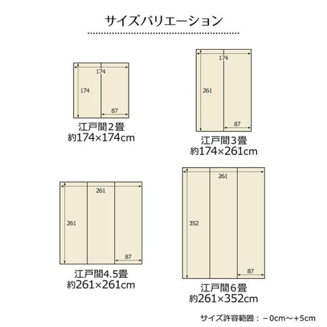 | 174×174cm | 174×261cm | 261×261cm | 261×352cm |