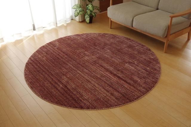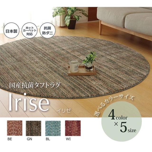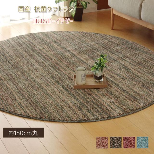 ラグ カーペット 円形 丸型 抗菌 防臭 防ダニ タフト 国産 ミックスカラー イリゼ ワイン 約180cm丸 敷き物 機能性 円形(代引不可)【送料