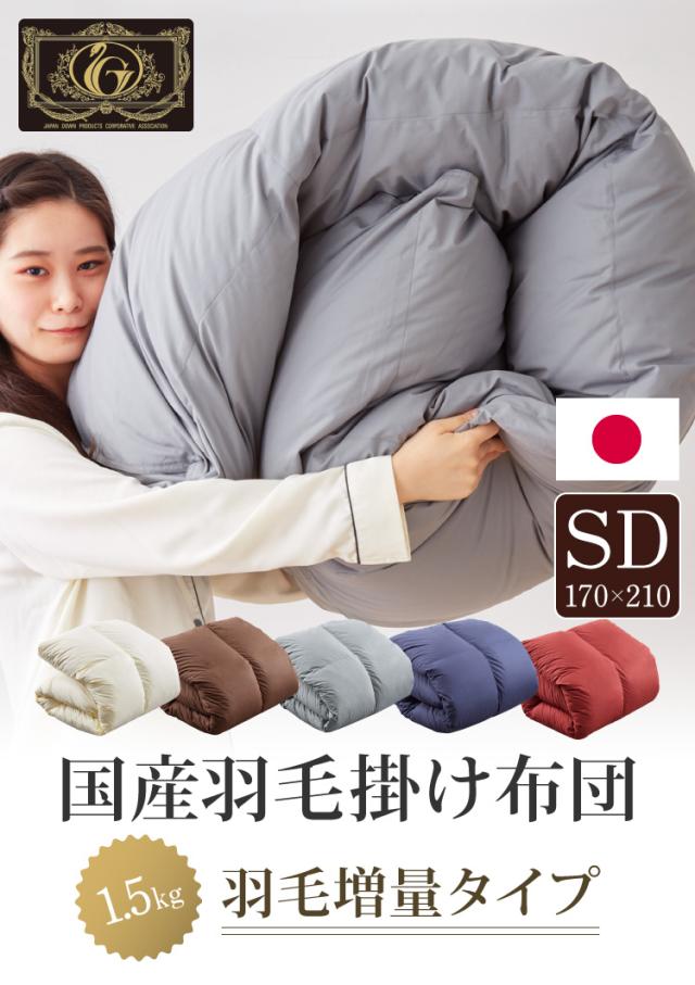 日本製 羽毛ふとん 羽毛増量 セミダブル 1.5kg 最高ランクプレミアムゴールドラベル ポーランド産ホワイトダックダウン 93% 440dp以上 立体キルト 抗菌 掛け布団 国産 羽毛 布団 ふとん 掛布団(代引不可)【送料無料】