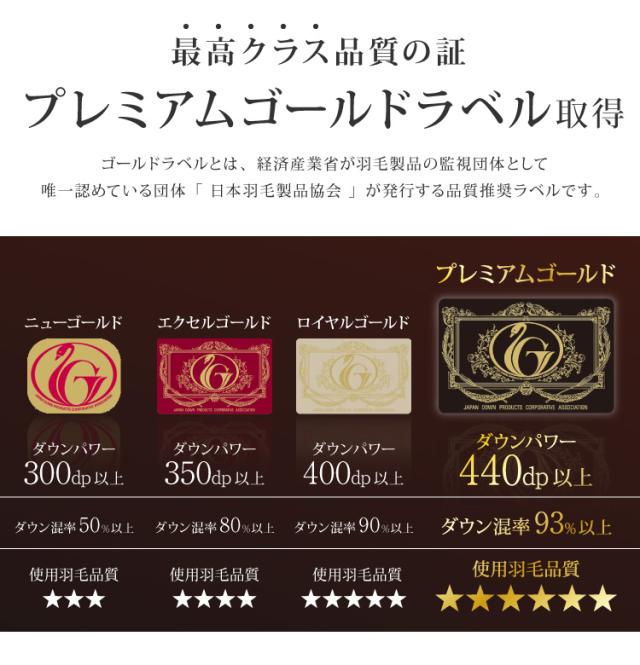 | 日本製 羽毛布団 ホワイトダックダウン プレミアムゴールドラベル | ||||