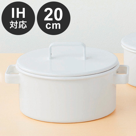 365methods キャセロール 20cm ホワイト フタ付き ガス火 IH対応 両手鍋 ホーロー 琺瑯 鍋 365メソッド【送料無料】