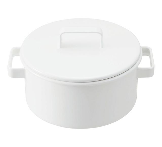 スタイリッシュなホーロー製キャセロール。ハンドルやツマミにこだわり全てホーロー材質で仕上げた逸品。オーブン調理も可能。また、水切れの良い縁巻きになっています。