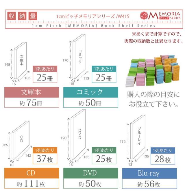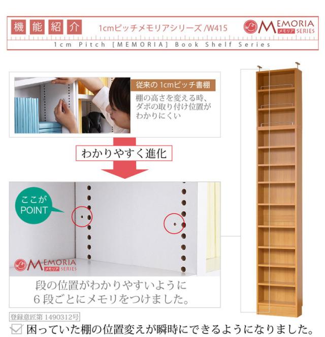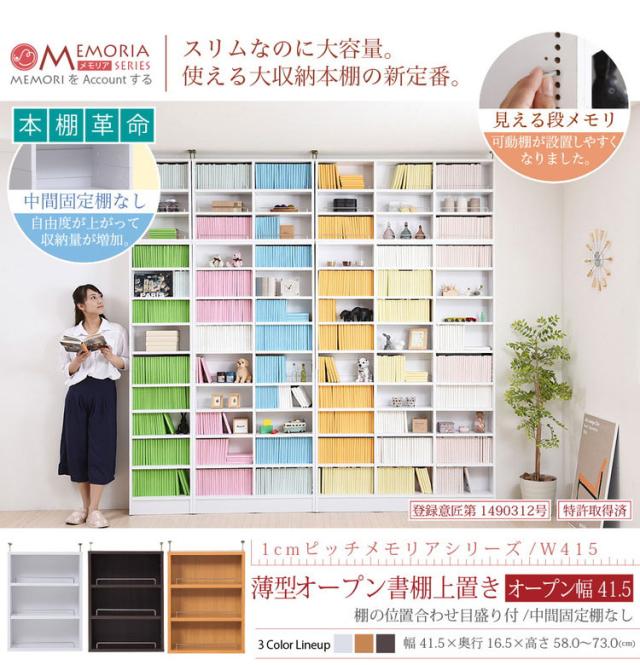 MEMORIA 本棚 薄型 オープン上置き単品 幅41.5 棚板が1cmピッチで調整できる メモリアシリーズ まるで図書館 スリム 大容量 文庫本 コミック(代引不可)【送料無料】